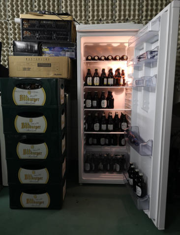 Kühlschrank mit mind. 5 Kästen Stubbies Volumen aufgestellt - es plöppt!